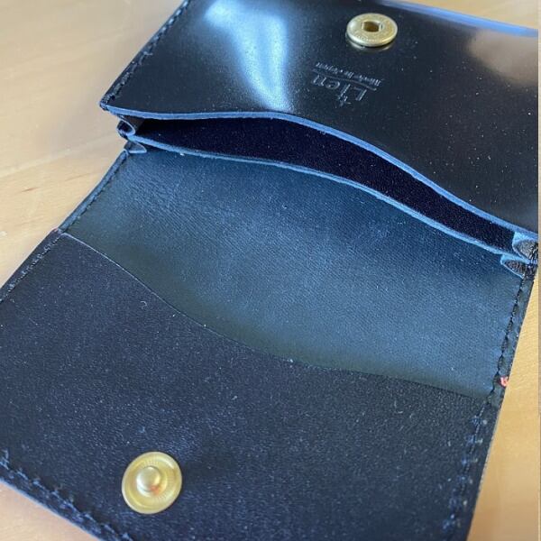革のダイアモンドと言われるコードバンを使用し、蓋裏と内側の仕切り部分の革は栃木レザーを使用した贅沢仕様。