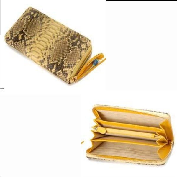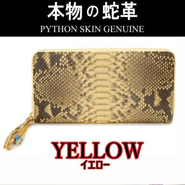 202 黄 パイソン 蛇革 ラウンドファスナー長財布 新品