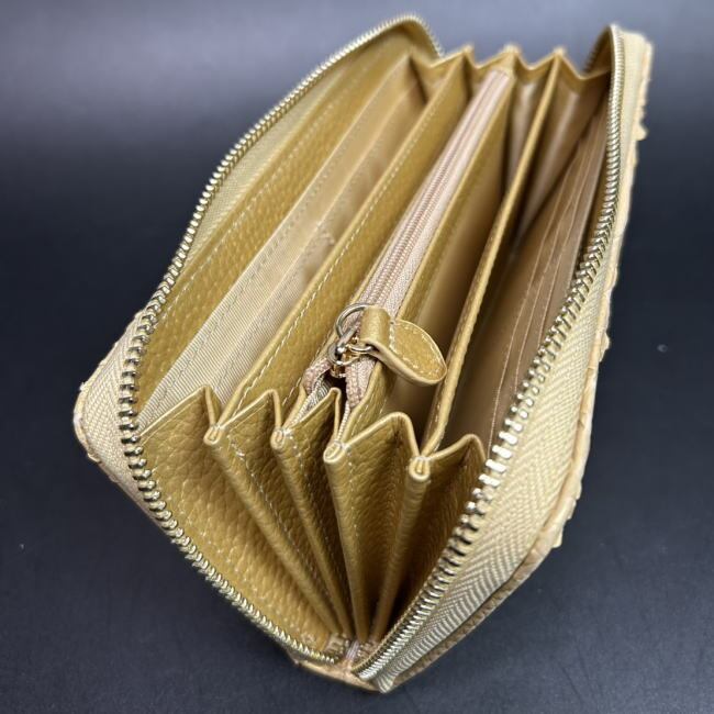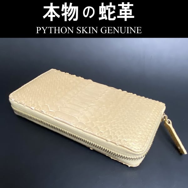 ゴールド パイソン 本物 ヘビ革 ラウンド 長財布 9735