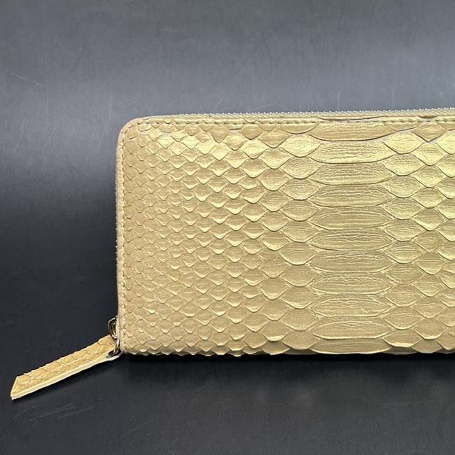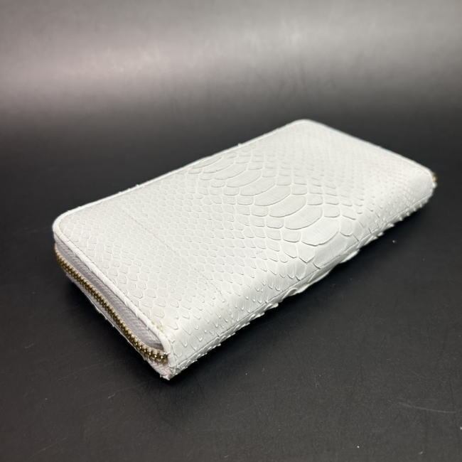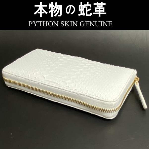 白×金 パイソン 9735 ラウンドファスナー 長財布 本物 ヘビ革