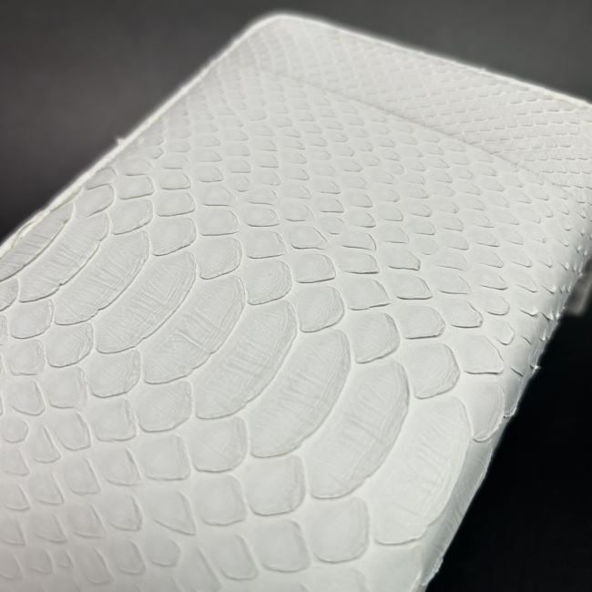 ・パイソン皮を、ナチュラルな染粉で染色しているため染め上がりのお色はロットにより微妙に異なります。