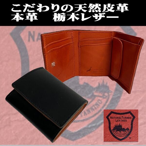 1024BKOR 栃木レザー コンパクト 三つ折り財布 本革 日本製