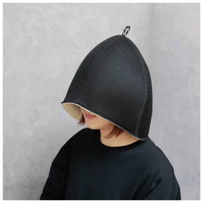 【サウナハット ブラック ごリラックス まもるさんの瞑想メッシュハット】