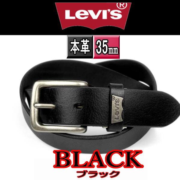 黒 リーバイス 9020 ロゴプレートデザイン本革ベルト 幅 3.5cm