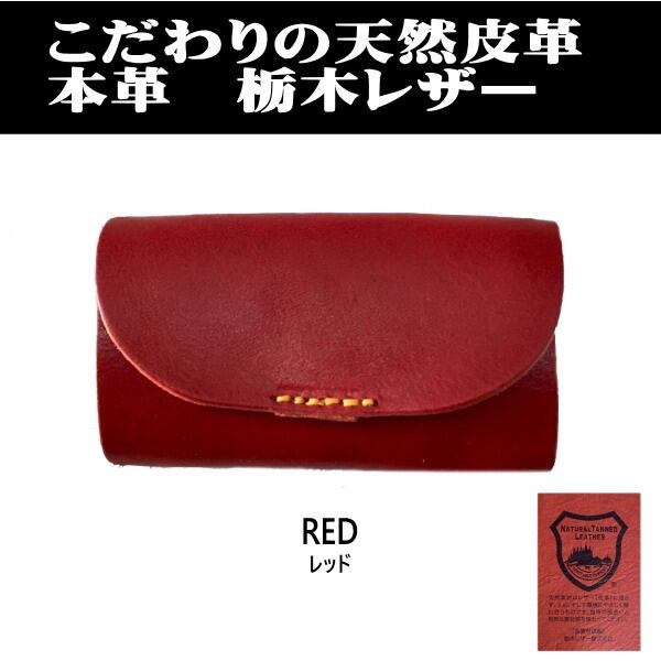 本革 キーケース 栃木レザー 一枚革 ヌメ革 日本製 4連 4601レッド 赤 RED 新品