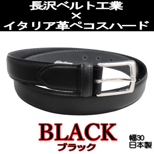 本革ベルト 黒 イタリア革 日本製 NKB-001 長沢ベルト工業